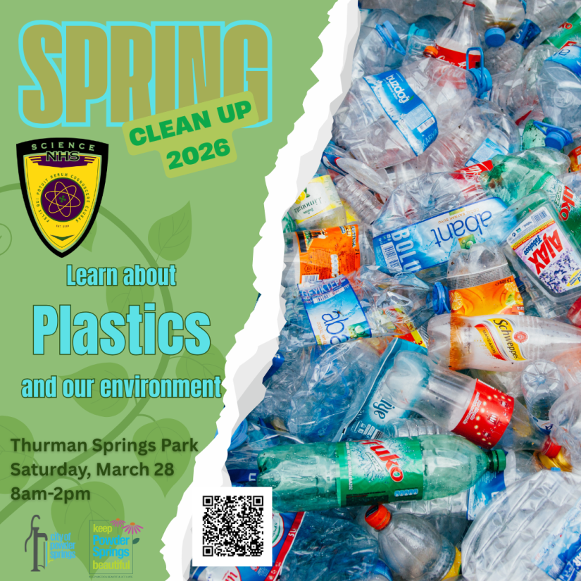 Want to learn more about plastics recycling? Join us on Saturday, March 28th for Spring Clean Up 2026 at Thurman Springs Park. Our very own National Science Honor Society from McEachern High School will be there to provide education and answer questions about plastics and how they are renewed through recycling.