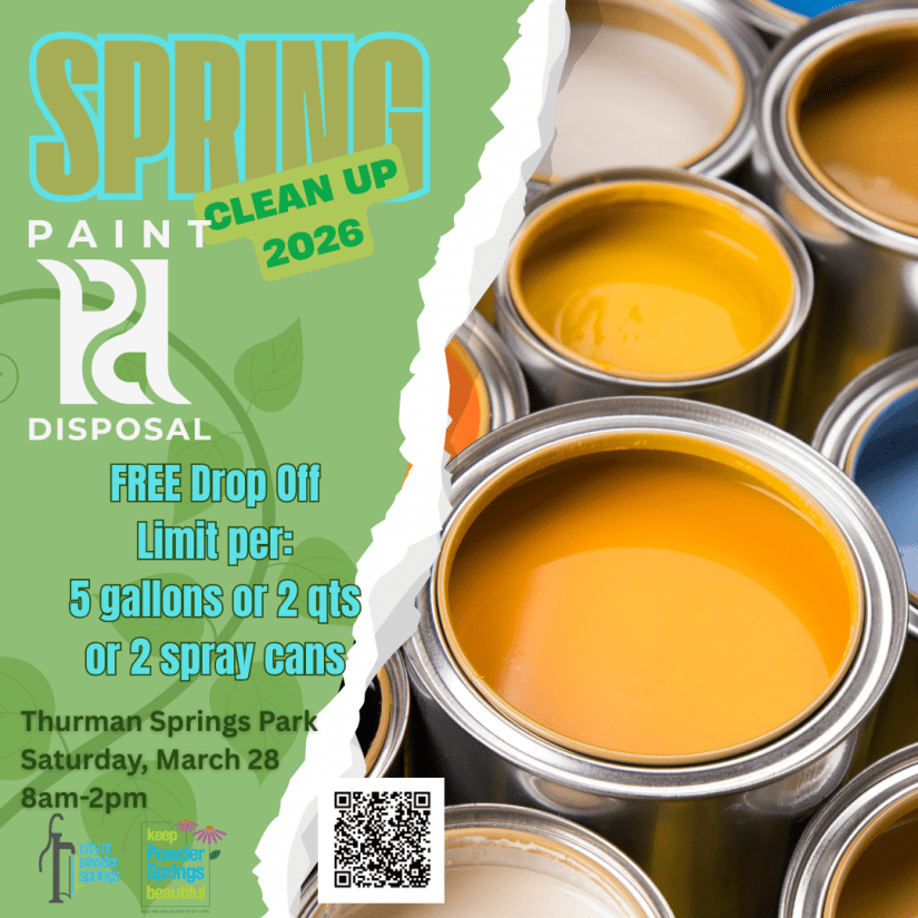 We know that paint is one of the top HHW items (Household Hazardous Waste) our community needs to dispose of responsibly. Keep Powder Springs Beautiful is sponsoring this FREE drop off for our residents at 5 gallons per household or 2 quarts per household or 2 spray cans per household. Come to drop off some paint and learn about Atlanta Paint Disposal’s at home pick up program!