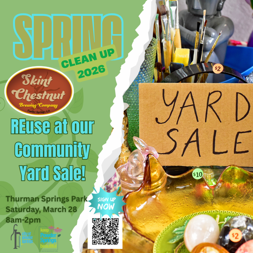Join us for a celebrating “all things sustainability” in Powder Springs. We’ll highlight all the Rs on this day with vendors, stage demonstrations, a community yard sale, and recycling drop off. Learn more about partners in our Cobb community who provide environmental services and education. Learn more about the Yard Sale participation, recycling drop off, the plant sale and more here.